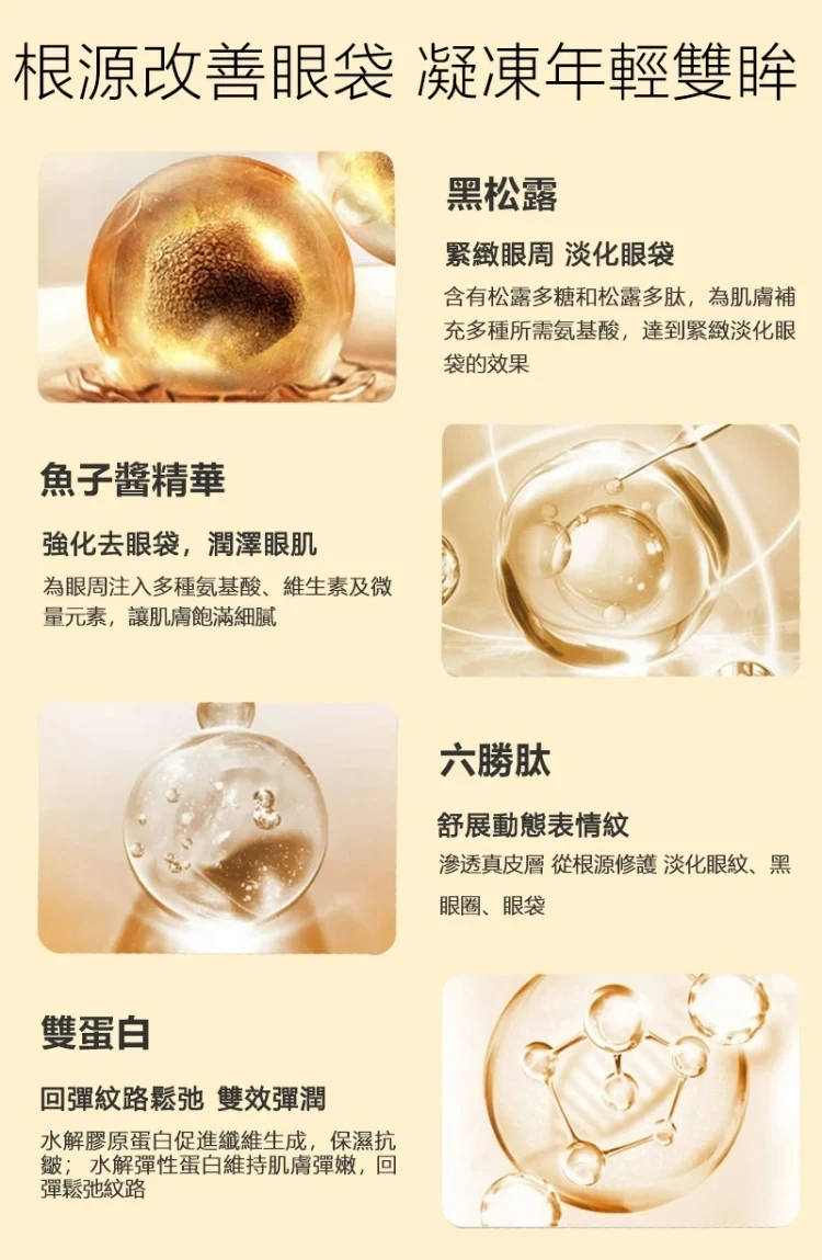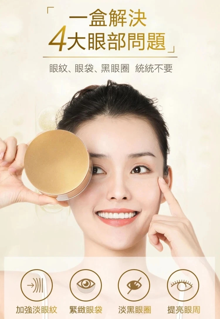 【Kevin信譽擔保,全網挑戰】醫美級黃金煥顏緊緻眼膜,28天不見效包賠,裹有黑松露、魚子醬、六勝肽等專櫃等級去眼袋成分